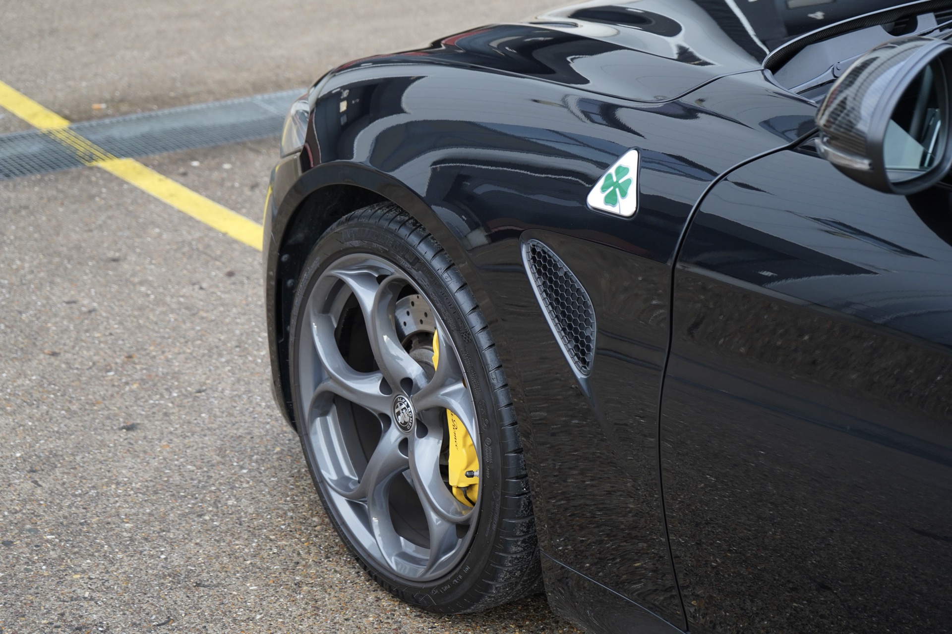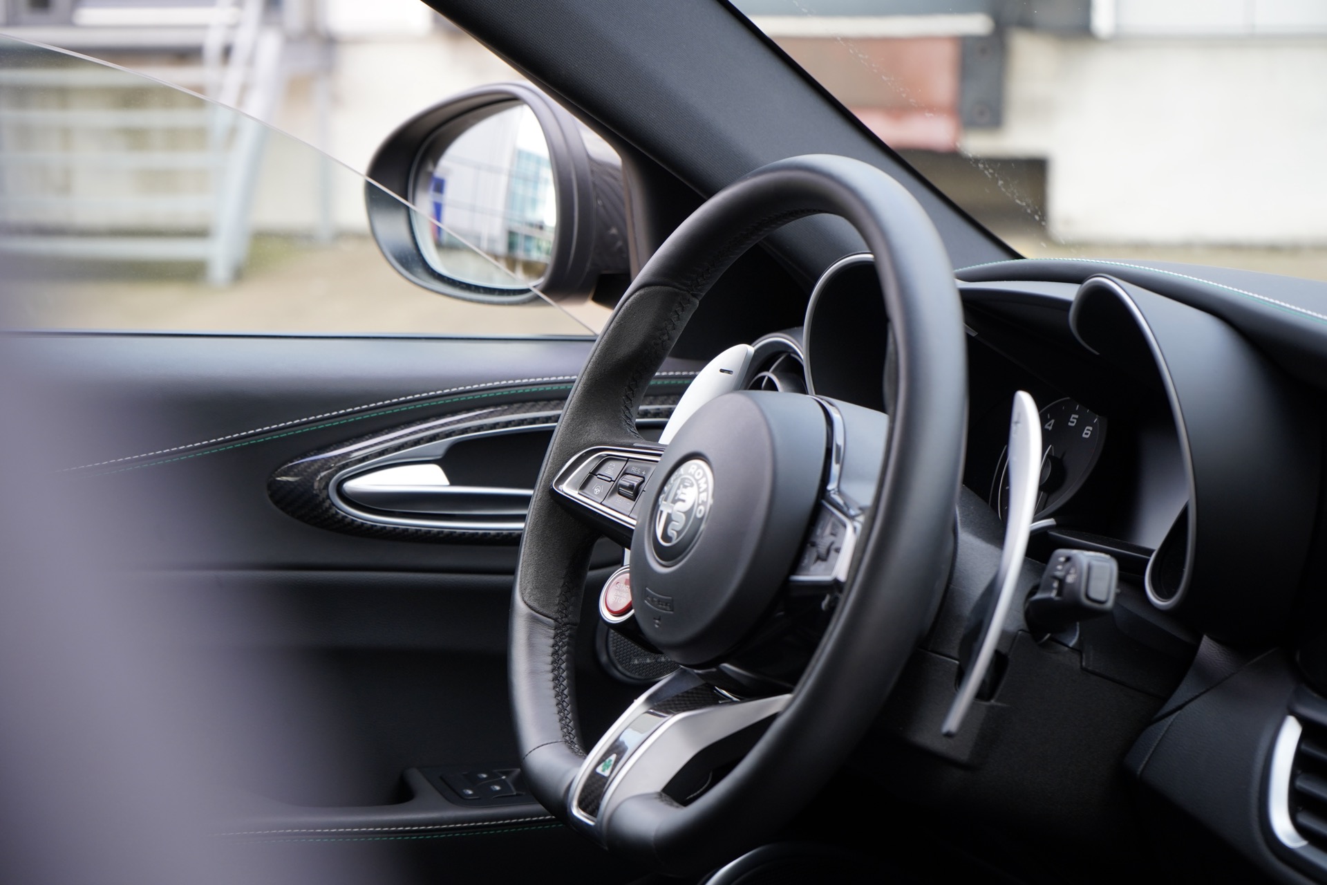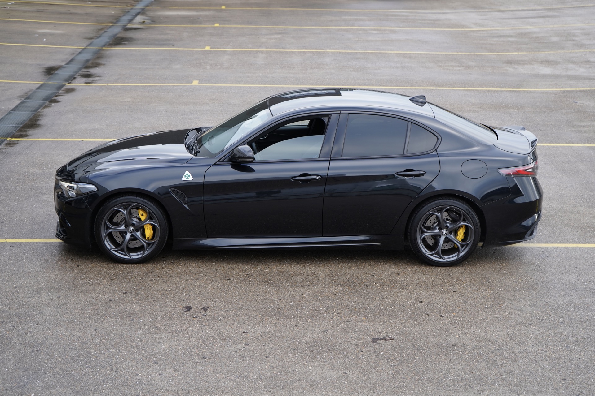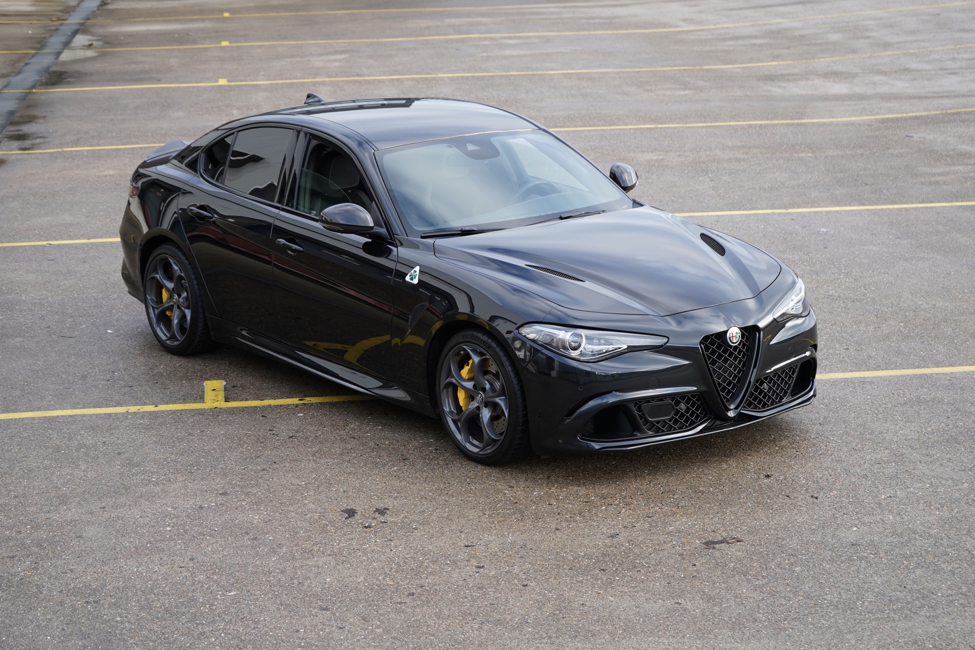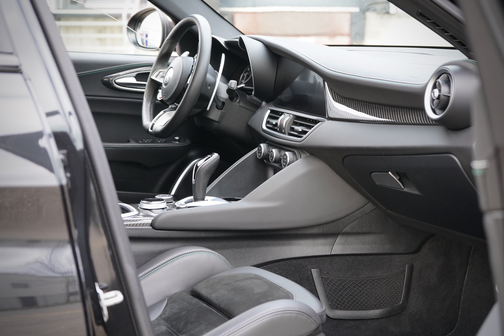 Rechtstreeks van de eerste en enige eigenaar kochten wij deze Giulia Quadrifoglio uit 2022 in absolute nieuwstaat. Nieuw besteld en samengesteld in Nero Vulcano met het mooi carbon exposed dak, Classico velgen, gele remklauwen, carbon spiegelkappen en het interieur in leder alcantara met de mooie wit/groene stiksels. Verder is ze ook nog voorzien van privacy glass vanaf de B-stijl, adaptive cruise control, Harman Kardon audio systeem, keyless entry en achteruit-rij camera. Een absoluut gekoesterde auto, nog nooit een druppel regen gezien en een maagdelijke kilometerstand van 19.800km.