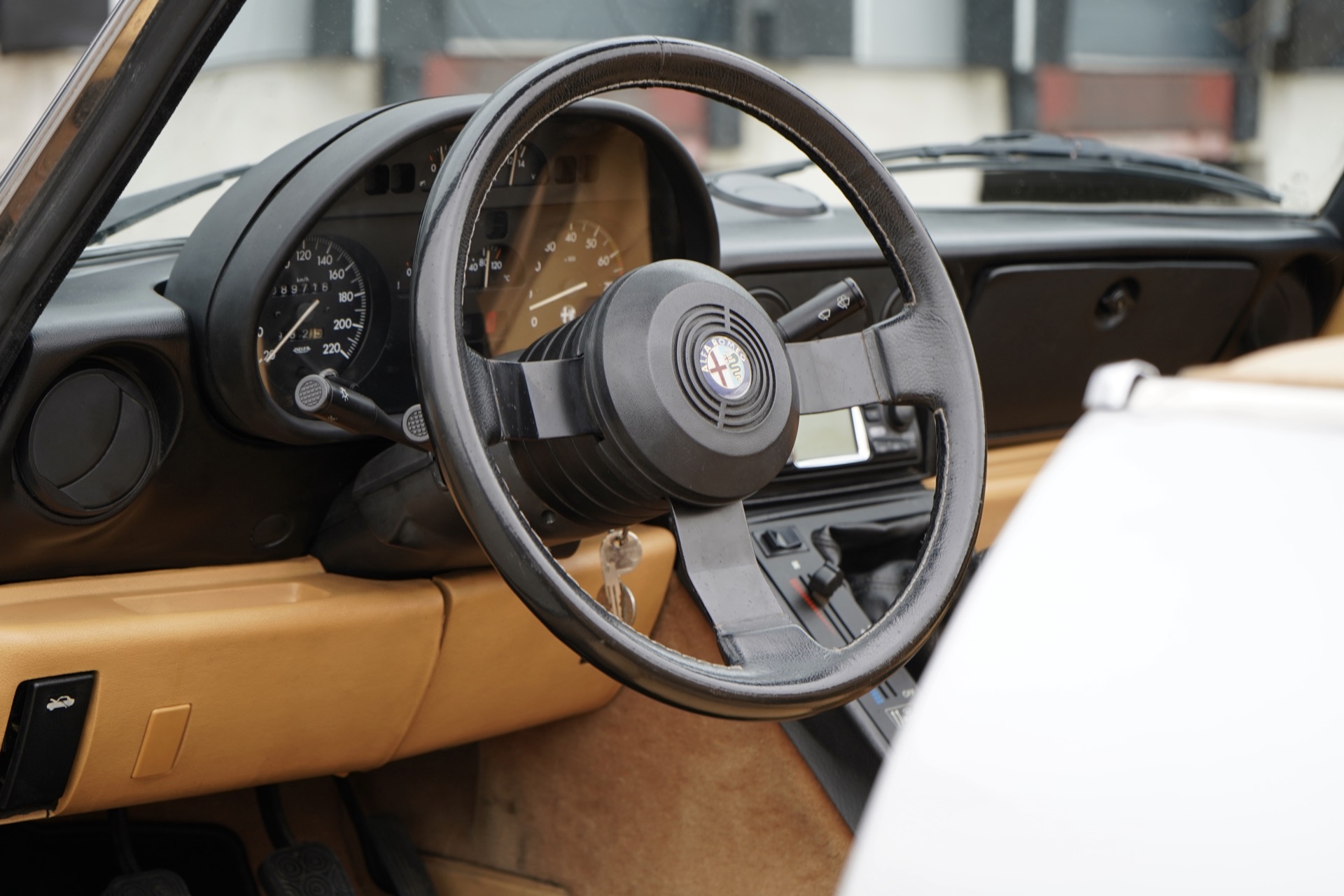 Bij ons ingeruild: Een hele mooie Alfa Romeo Spider 2.0. De serie 4, dus de mooie klassieke lijn, maar mét stuurbekrachting, injectie, en elektrische ramen. Een moderne klassieker dus... Dit exemplaar is pas voorzien van een nieuwe carbrioletkap, de stoelen zijn opnieuw bekleedt en ze is verder helemaal origineel. Het lakwerk heeft op sommige plekken een schoonheidsfoutje zoals een paar plekjes op de voorbumper en een vlekje op de achterbumper. Geen concoursstaat dus maar een auto om écht mee te rijden en van te genieten. Ze rijdt fantastisch. Prachtige kleurstelling in Grigio Touring met beige cuoio leder / alcantara.
