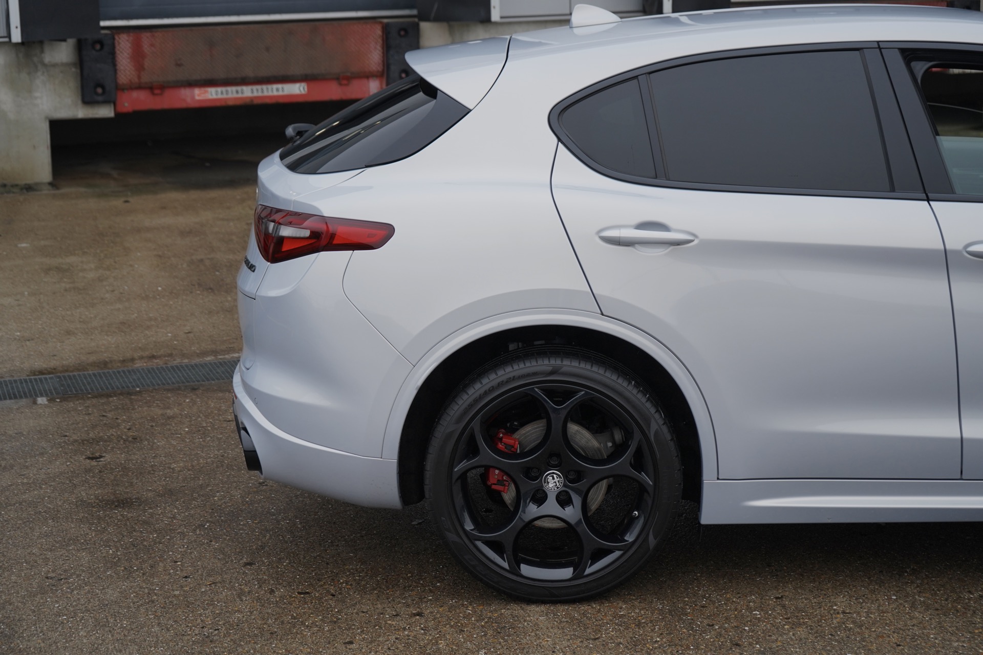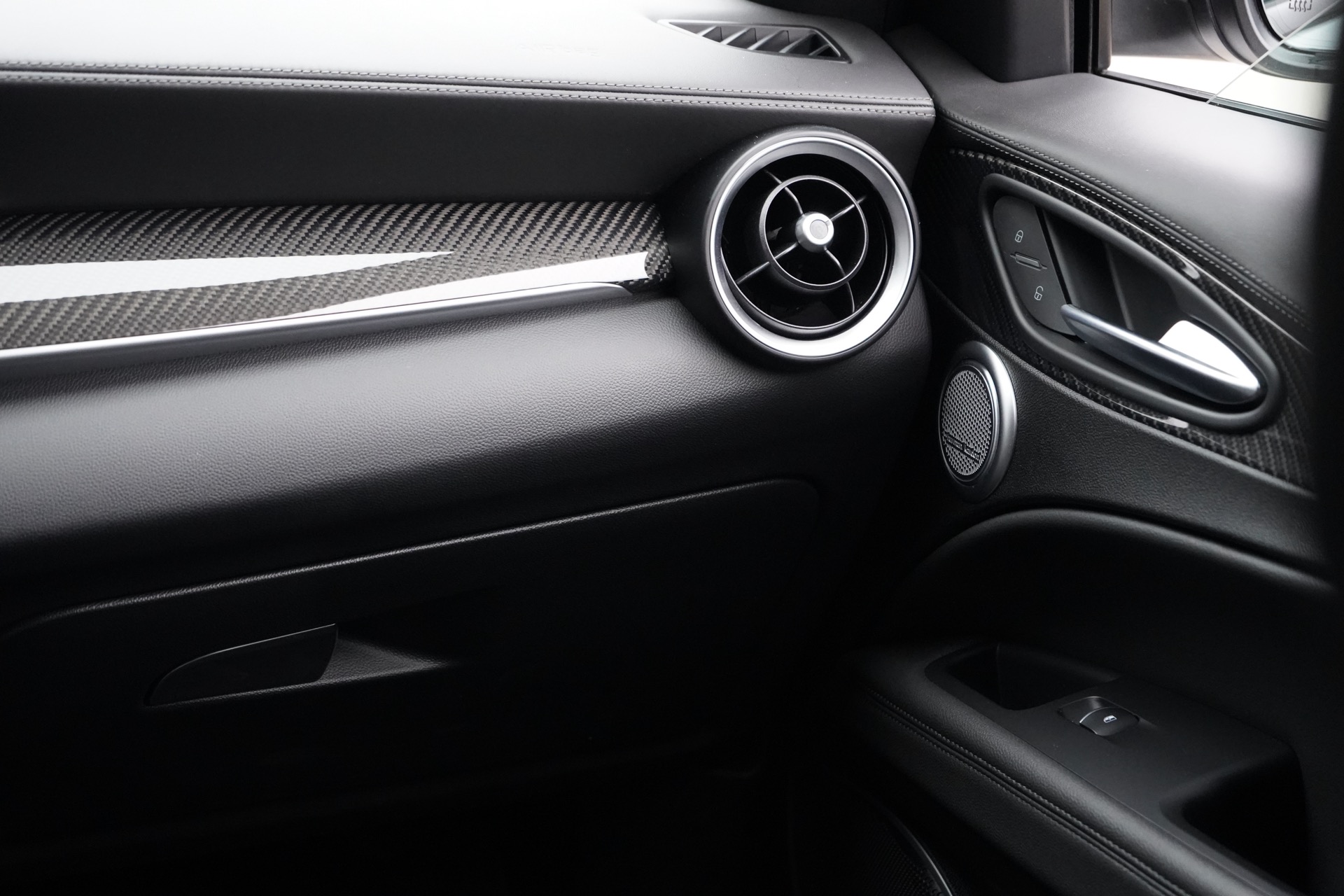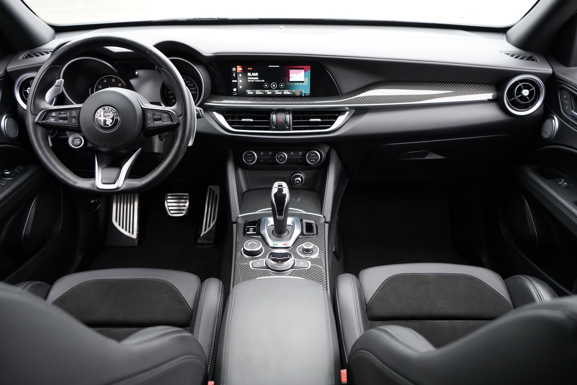 Dit moet toch wel een van de mooiste Stelvio's zijn die we ooit gehad hebben... In Bianco Lunare, het wit van de maan... Gecombineerd met zwart lederen sportstoelen en een interieur met een volledig met leder bekleedt dashboard en deurpanelen. De zeldzame Ti uitvoering met leder alcantara, donkere hemelbekleding en volledige carbon inleg in het dashboard. Aan de buitenzijde zijn alle lijsten meegespoten in kleur van de auto. Ze staat op 21 inch velgen in lakzwart, heeft zwarte raamlijsten en rode remklauwen. Van binnen voorzien van alle mooie opties. Harman Kardon Audio voor een perfect muziekgeluid, Apple CarPlay, Android auto, achteruit rij camera, stuurwiel verwarming, stoelverwarming en voor de liefhebber, adaptieve cruise control. Deze Stelvio verkeert met maar 19.413 km gereden in absolute nieuwstaat. Een waanzinnen verschijning en een fantastische auto om mee te rijden. Voor de echte liefhebber!