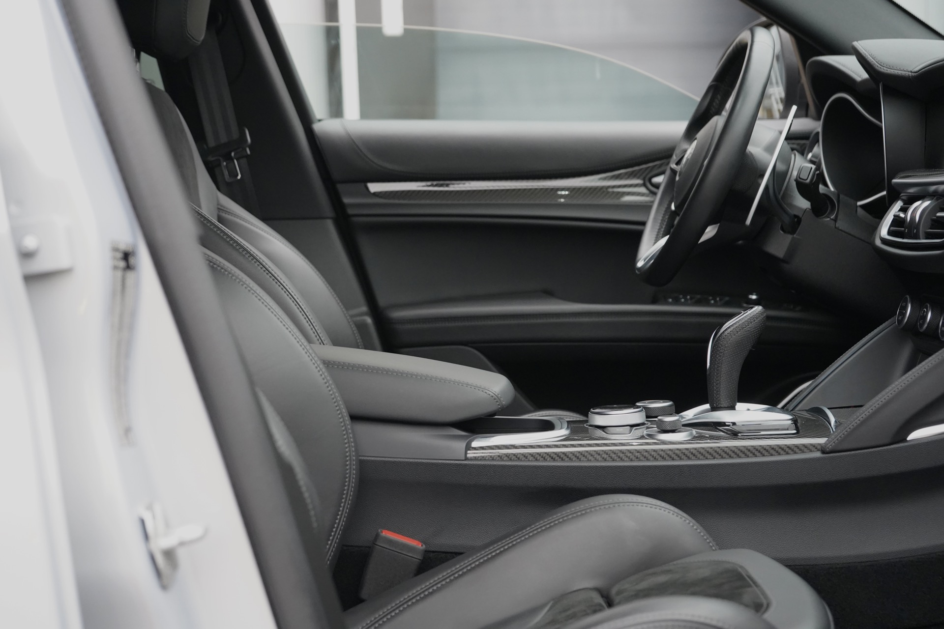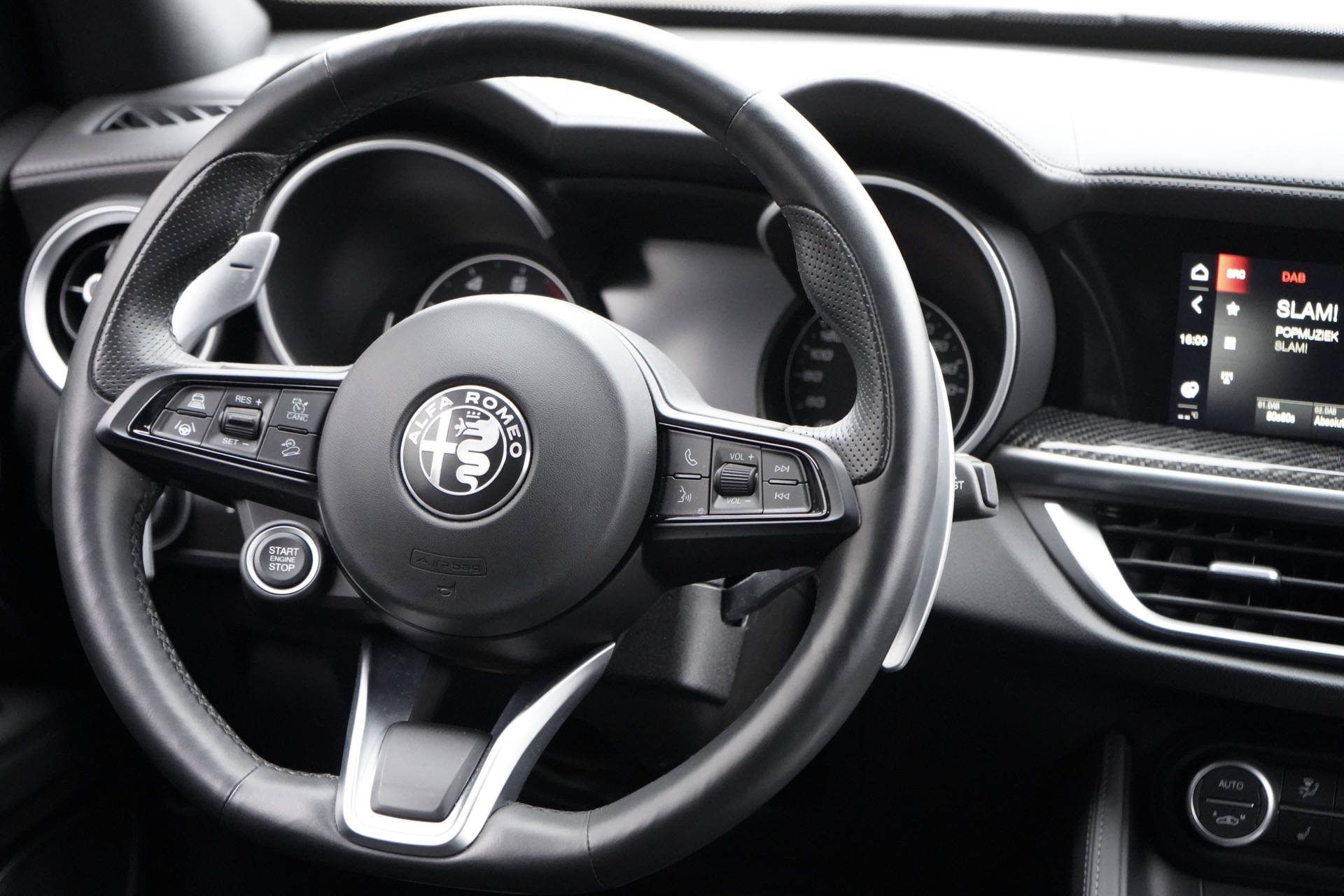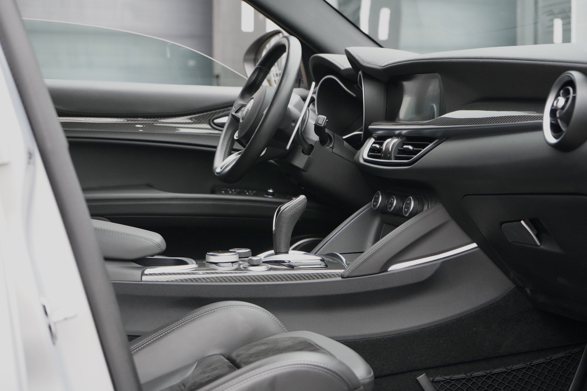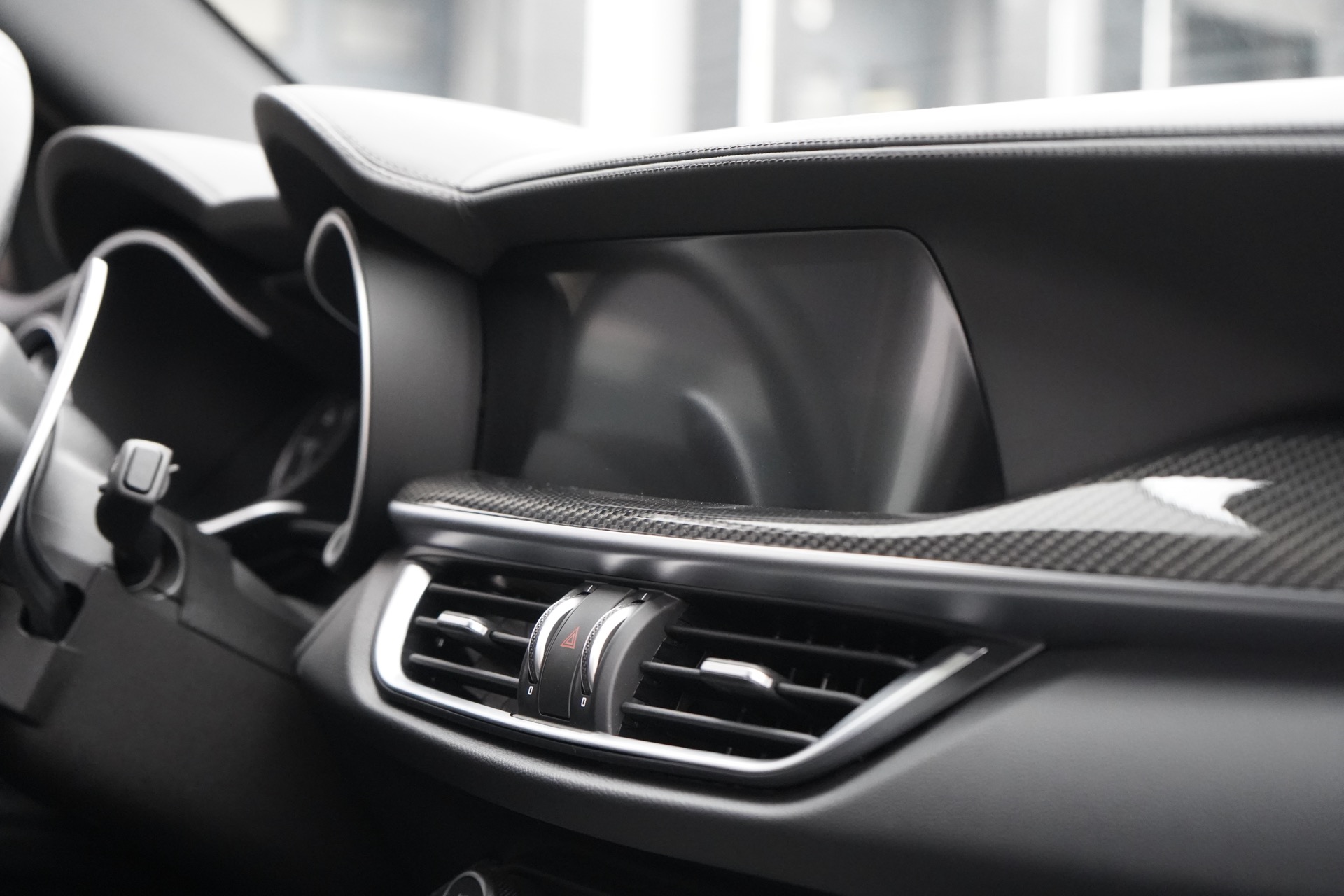 Dit moet toch wel een van de mooiste Stelvio's zijn die we ooit gehad hebben... In Bianco Lunare, het wit van de maan... Gecombineerd met zwart lederen sportstoelen en een interieur met een volledig met leder bekleedt dashboard en deurpanelen. De zeldzame Ti uitvoering met leder alcantara, donkere hemelbekleding en volledige carbon inleg in het dashboard. Aan de buitenzijde zijn alle lijsten meegespoten in kleur van de auto. Ze staat op 21 inch velgen in lakzwart, heeft zwarte raamlijsten en rode remklauwen. Van binnen voorzien van alle mooie opties. Harman Kardon Audio voor een perfect muziekgeluid, Apple CarPlay, Android auto, achteruit rij camera, stuurwiel verwarming, stoelverwarming en voor de liefhebber, adaptieve cruise control. Deze Stelvio verkeert met maar 19.413 km gereden in absolute nieuwstaat. Een waanzinnen verschijning en een fantastische auto om mee te rijden. Voor de echte liefhebber!