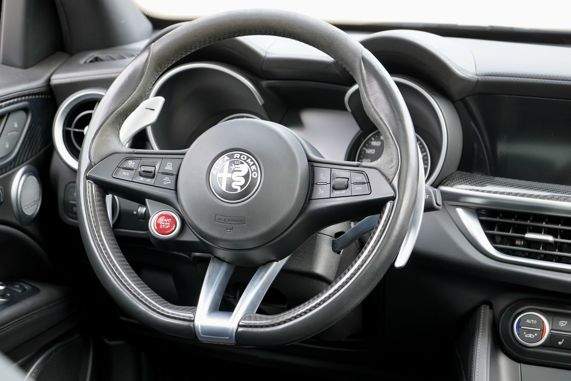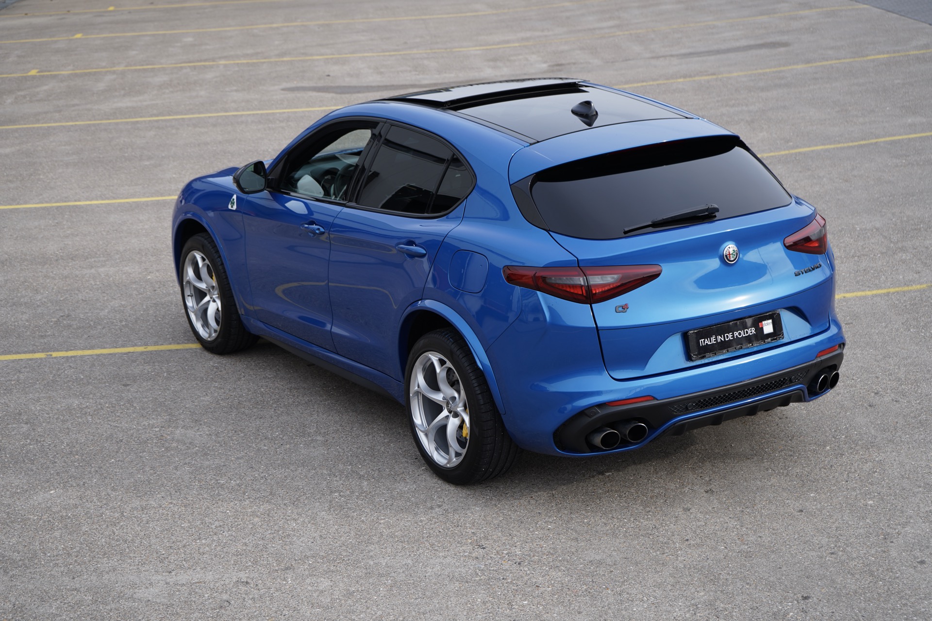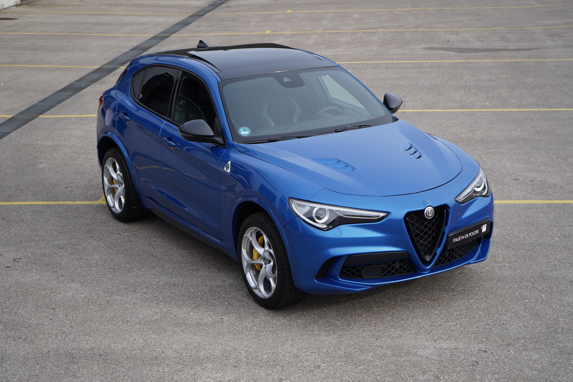 Prachtige Alfa Romeo Stelvio Quadrifoglio in de zeldzame kleur Blu Misano. Een perfect verzorgd exemplaar met hele mooie opties... 510 PK uit de door Ferrari gebouwde 2.9 V6 Biturbo. Ze is voorzien van het grote glazen schuifdak met veel licht inval, ook voor de achterpassagiers. Ook is ze voorzien van Harman Kardon Audio systeem voor een perfect muziekgeluid, Adaptive cruise control, gele remmen, het brede 8,8 inch infotainment systeem en Apple CarPlay. Perfect verzorgd en volledig gedocumenteerd. Een Stelvio Quadrifoglio voor de echte liefhebber...