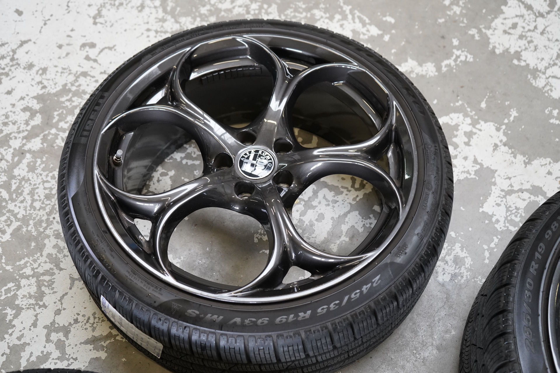 Complete winterset voor uw Alfa Romeo Giulia Quadrfoglio. De originele licht gewicht Classico velgen in 19 inch met winterbanden Pirello P-Sotto Zero in de maat (voorzijde) 245-35-19 en 285-30-19 (achterzijde). Prijs voor complete set.